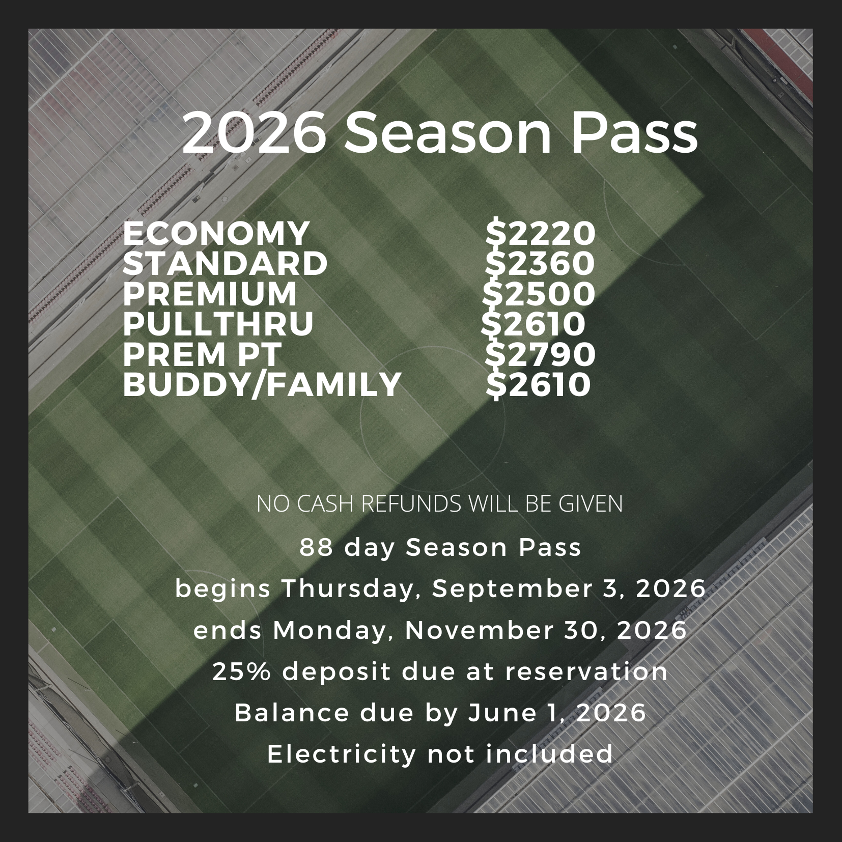Season Pass guests will be charged for electricity.